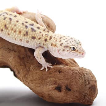 All leopard geckos, including this diablo blanco morph, are active at night and do not need to bask under UVB lighting.